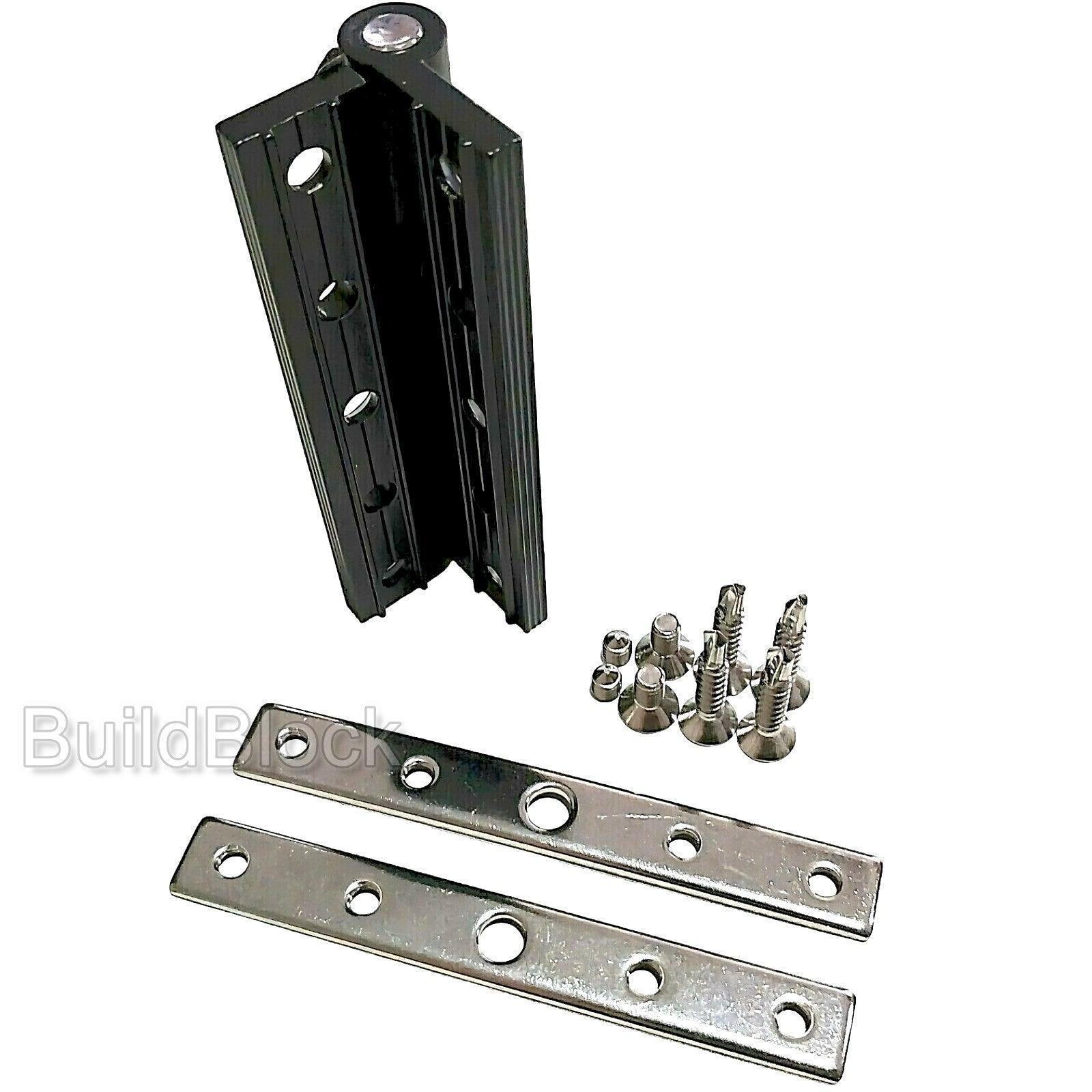 Black bifold hinges as used with Smart Architectural Systems Visofold doors, also used by many other manufactures of aluminium bi-folding profiles.